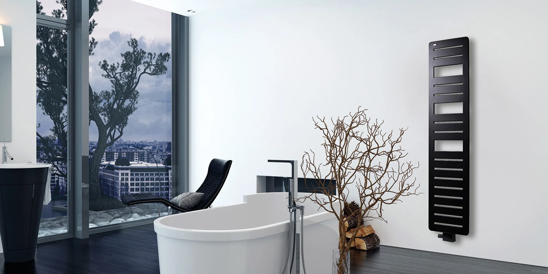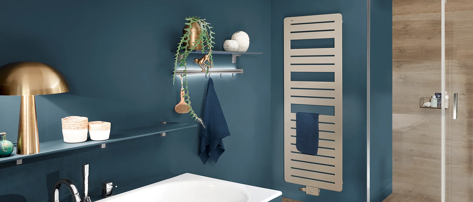 Der neue flache Top-Badwärmer aus eleganten Flachprofilrohren 70 x 11 mm, die übergangslos verbunden sind, wirkt wie aus einem Bauteil gegossen. Je nach Baugröße verfügt Page über 2 bis 3 Öffnungen für das bequeme Einhängen von Handtüchern.