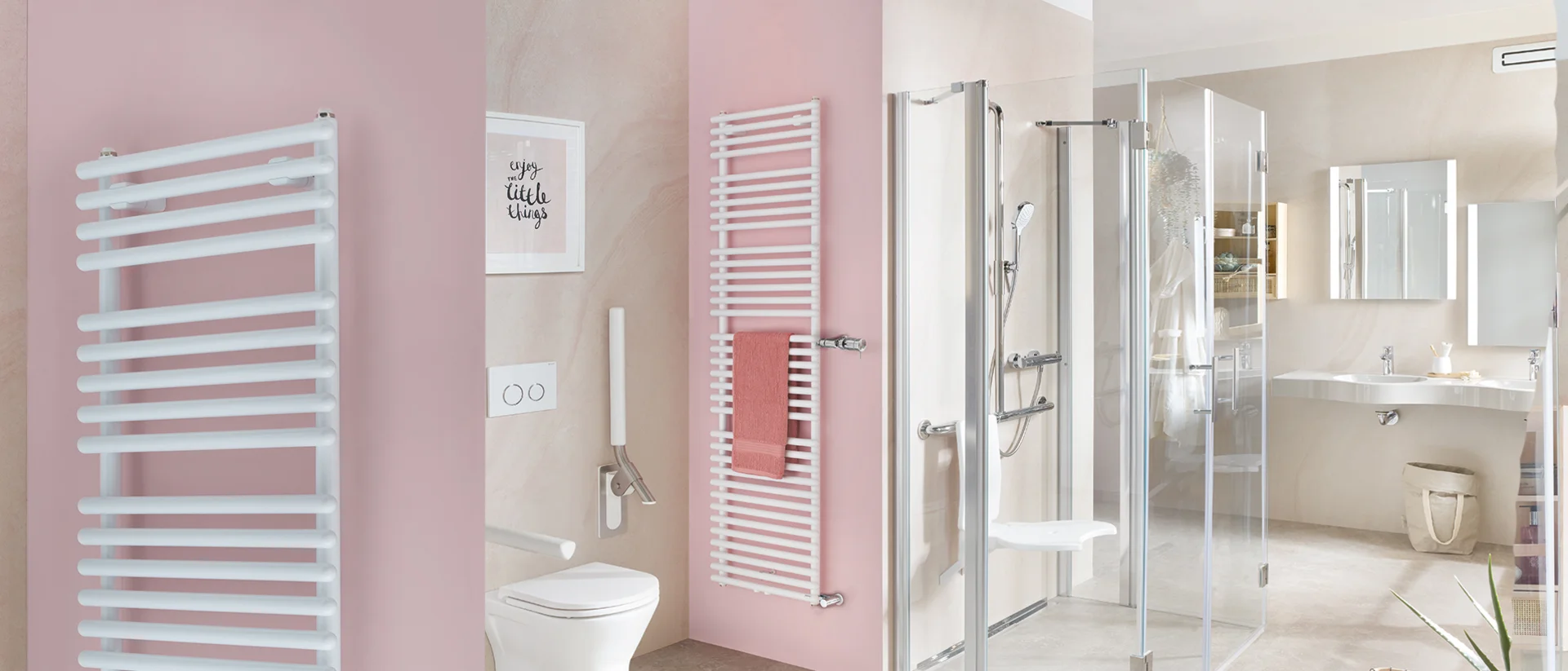 Und funktional: 4 anwendungsgerechte Bauhöhen, 20 mm weite Rohrabstände für die Pflege und ideal verteilte Aufnahmen für Handtücher.